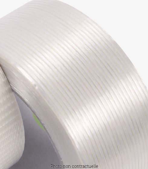 Adhésif armé fil à fil 3M conçu pour le maintien et le cerclage d’objets lourds grâce à son renfort en fibre de verre.