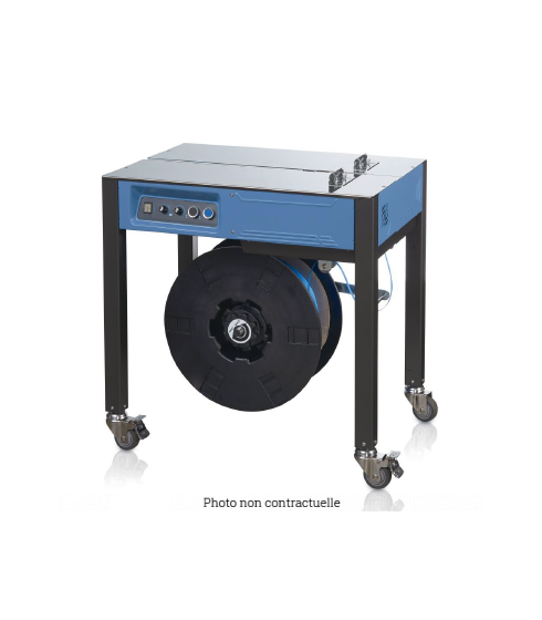 Machine semi-automatique conçue pour un cerclage efficace des colis et palettes, alliant vitesse et précision.
