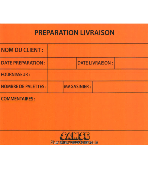 Etiquette velin orange 164x200mm Ø76 adhésif permanent imprimé "Préparation Livraison"