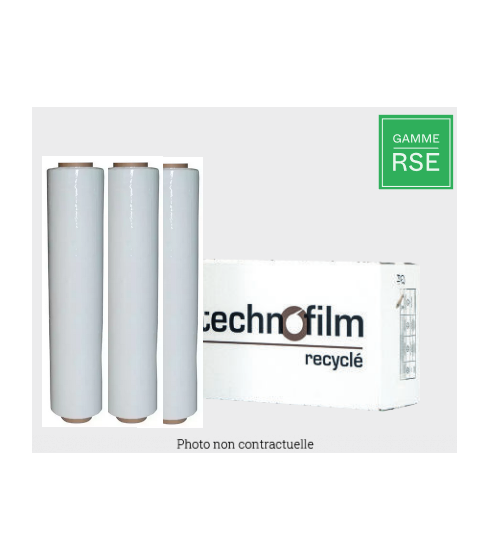 Le film étirable manuel recyclé Technofilm combine durabilité, performance et respect de l’environnement. Idéal pour vos besoins d’emballage tout en contribuant à la réduction de votre empreinte écologique.