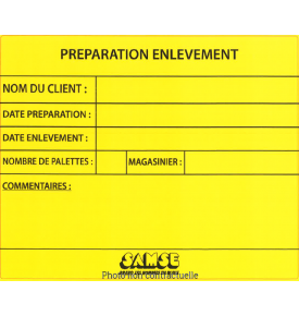 Etiquette velin jaune 164x200mm Ø76 adhésif permanent imprimé "Préparation Enlèvement"