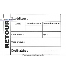 Etiquette velin blanche 130x188mm Ø40 imprimé "Retour Expéditeur"
