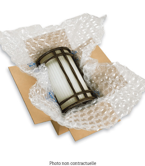 Fabriqué à partir de 95 % de matière recyclée, ce coussin d’air assure une excellente absorption des chocs tout en réduisant l’impact environnemental de vos emballages.