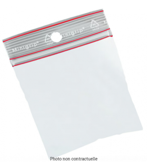 Le sachet PEBD Minigrip est équipé d'une glissière ZIP robuste qui permet une ouverture et une fermeture faciles, sans accessoire.